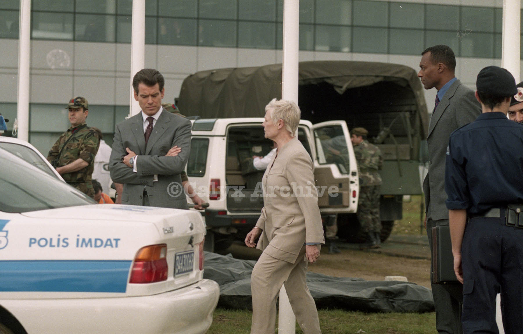 - ©CALYX Pictures ARCHIVE Filming 007 James Bond “The World is not Enough” at the Motorola plant on St, Andrews Ridge, with Pierce Brosnan, Sophie Marceau, Judy Dench, Colin Salmon, Michael Apted,